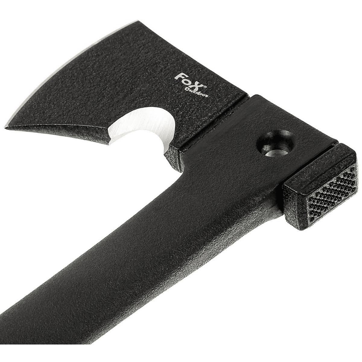 Överlevnadsyxa med yxa, kniv, tändstål och visselpipa.Yxhuvudet av hammarhuvud typ är tillverkad av 3Cr13-stål.